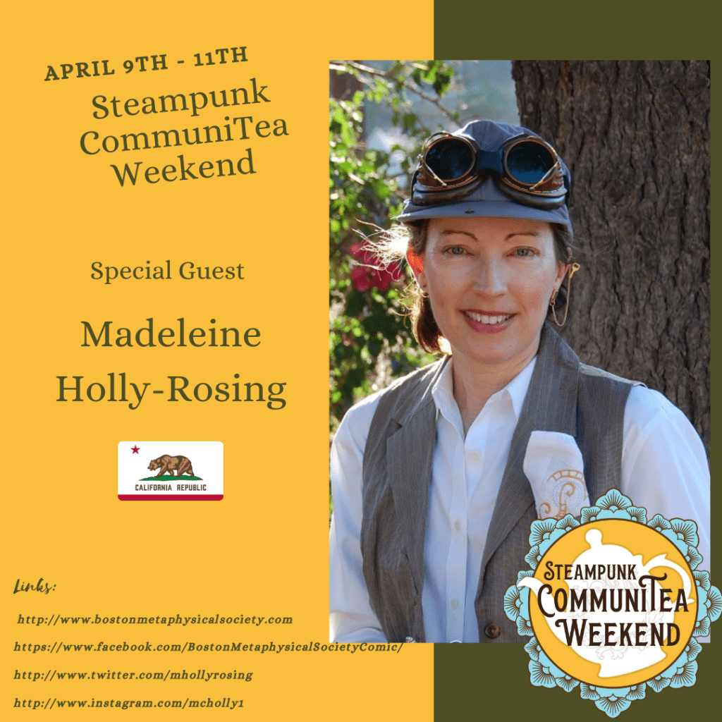 Madeleine Holly-Rosing is the writer/creator of the steampunk supernatural prose and graphic novel series, Boston Metaphysical Society. She was also the winner of the Sloan Fellowship for screenwriting, and the Gold Aurora and Bronze Telly for a PSA produced by Women In Film as well as having won numerous awards while completing the UCLA MFA Program in Screenwriting. Source Point Press re-published the first six issues and the trade paperback of Boston Metaphysical Society original graphic novel in 2019/2020 and has picked up the sequels. Those will hit comic book stores in 2021.