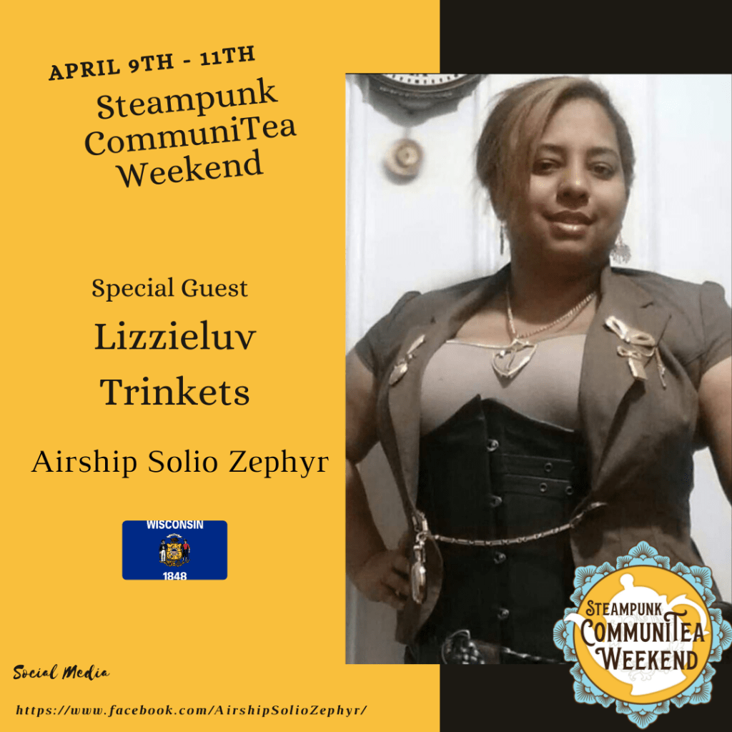 Lizzieluv Trinkets, a trinketeer on Airship Solio Zephyr in Wisconsin, fell in love with steampunk in 2013. When she attended the Steampunk Symposium, she was hooked. Trinkets has always been a helpful ball of aether so she wanted to do something charitable that involved the wonderful steampunk community. After reflecting on whether anyone had ever organized a food drive at any of the steampunk conventions, “Steampunk Provisions for the Hungry” was born. With the help of an amazing group of steampunk friends, Trinkets and the Provisions team collects food and toiletries donated by fellow congoers and distributes them to local pantries. Previous collections have taken place at several Midwestern steampunk conventions, including Motor City Steam Con in metro Detroit and Geneva Steam in Delavan, Wis.