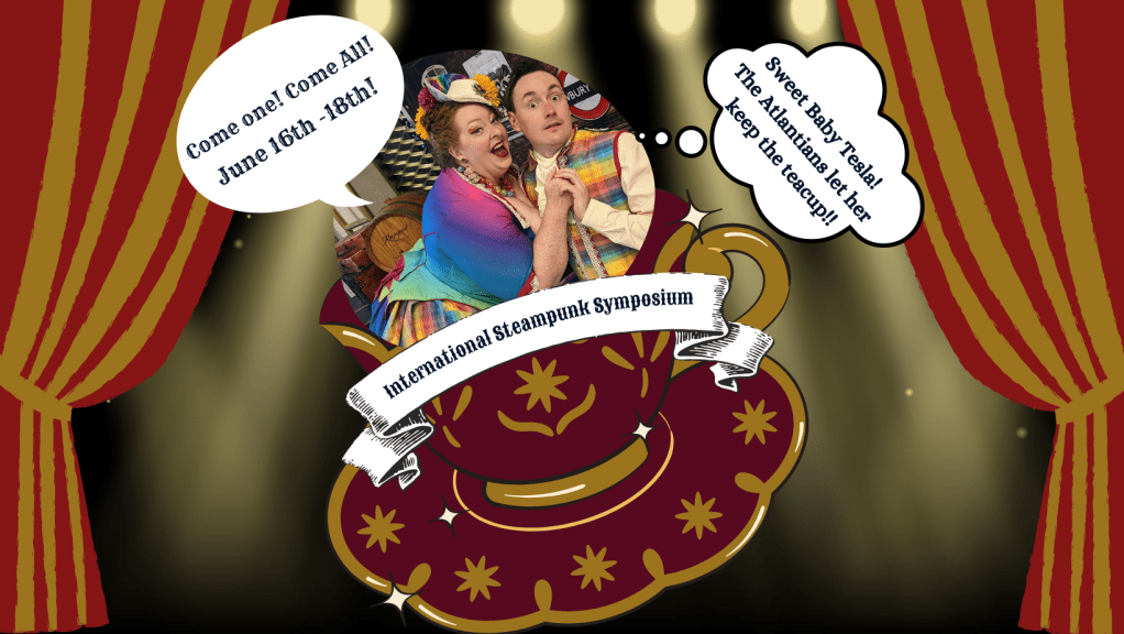 The Grand Arbiter and I are off for adventures at the wonderful International Steampunk Symposium. (Tickets are still available although the discounted room block is not.) Our dearest Eve Riot is joining us for the weekend as is our beloved friend, Captain Azar. I hope that many of you will also join us for oodles of cheekiness and tomfoolery! You can find all of the programming on their website–there is a plethora of marvelous activities including their signature events, the Tea Stroll and Olympiad!–and I shall share our schedule here so that you may find it easily.