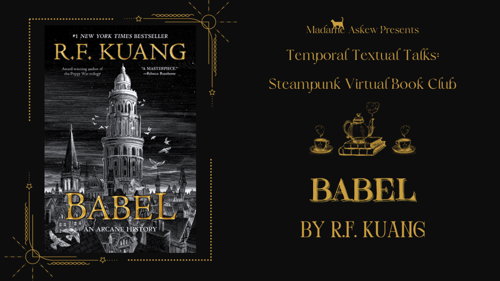 Our first book of the new year is Babel by R. F. Kuang. This is an absolutely brilliant novel, filled with intrigue and meditations on 19th century empire building. Filled with magic, mysterious technology, and incredible characters, this steampunk adjacent read is a real page turner! It is, of course, so much more than that, and I am so excited to discuss it with you.