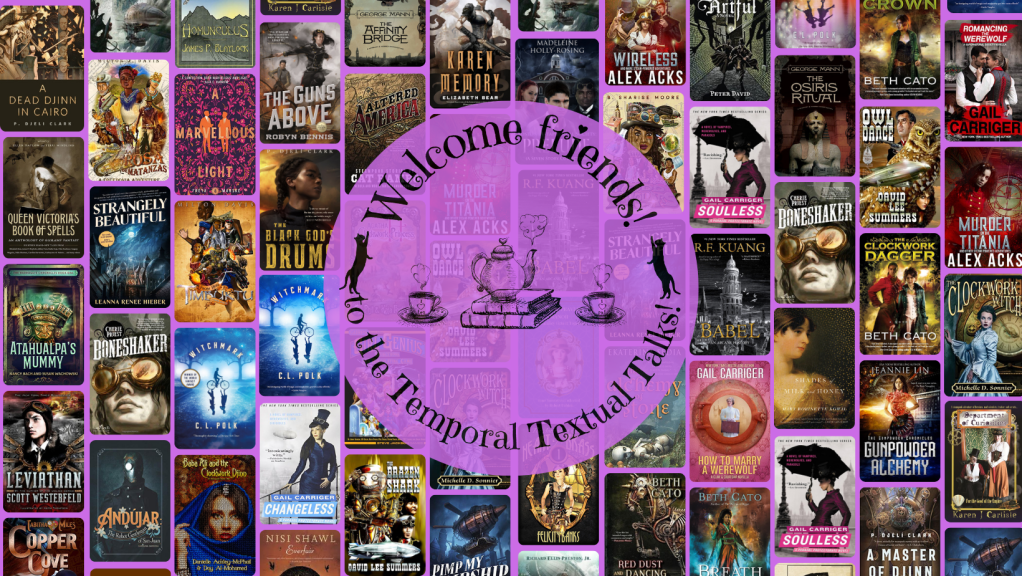 This year, you may notice more books that are adjacent rather than strictly steampunk. With the downturn in interest from the major publishers and the increasing popularity in things like Romantasy, Historical Fantasy, and Cosy Lit RPGs, there are fewer new to us Steampunk books to choose from. (We do continue to hunt for and support the ones we find, and we love recommendations for future reads.) Fortunately, here in the Temporal Entourage, we’ve never been too concerned about maintaining some sort of “strict steampunk” interpretation. After all, we are here for the tea, time travel, and tomfoolery!