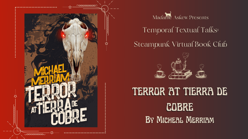 I am positively aflutter with excitement for this month’s book club. Catherine Lundoff, the stalwart editor and mastermind behind Queen of Swords Press, is joining us along with our author guest Micheal Merriam to chat about Mr Merriam’s thrilling Weird West tale, Terror at Tierra de Cobre. If you have read and enjoyed our dear friend David Lee Summer’s Clockwork Legion series, this is another gripping tale set in the New Mexico territory. A thrilling, Sapphic retelling of the Magnificent Seven with a side of eldritch villainy, Merriam’s book is a gripping read.