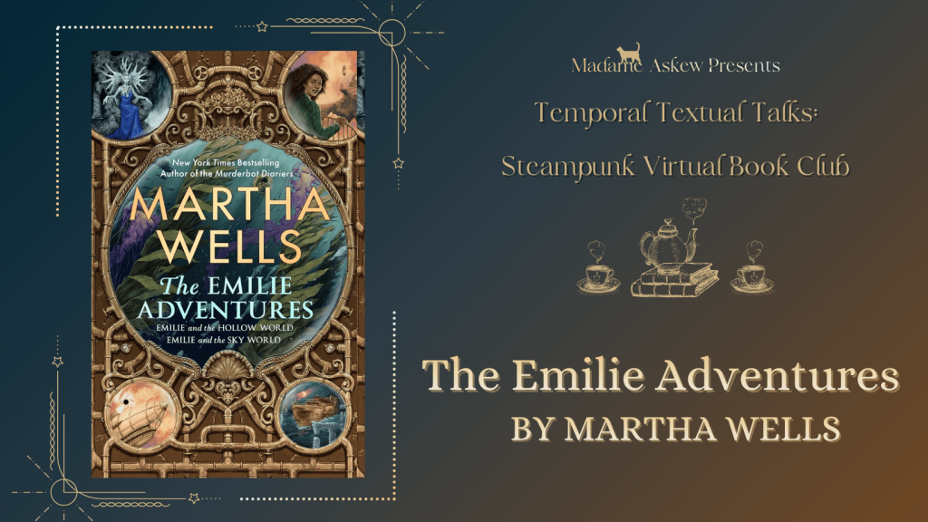 This Sunday, April 19th, we return for our monthly book chat! I am positively over the moon about our pick, The Emilie Adventures by legend Martha Wells. Whilst Madame Wells is unable to join us this month, I know we shall nonetheless have a marvelous conversation about this duology. A wonderful steampunk adventure ranging from the hollow center of the Earth to the mysterious heights above in the aether-streams, The Emilie Adventures are a delightful young adult read, perfect for readers of all ages.